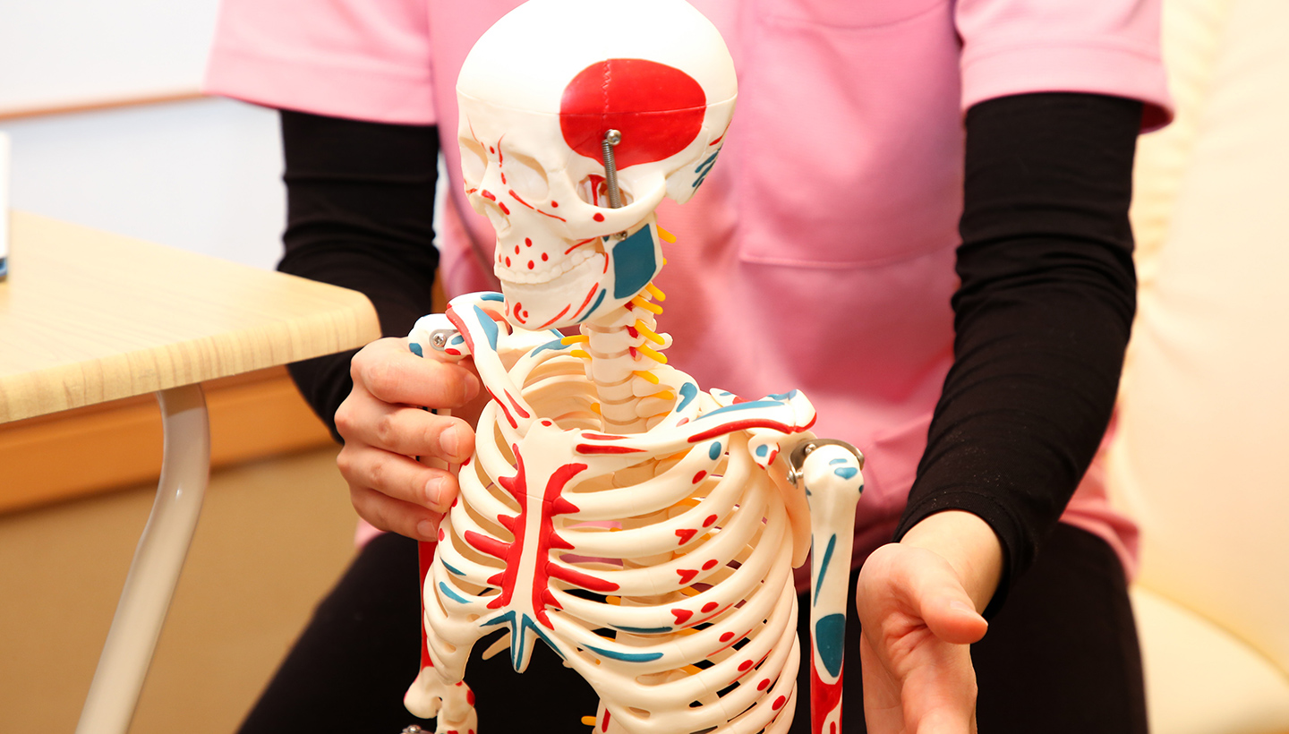施術の効果がより高まるよう、ご自宅でできるセルフケア方法をお伝えするほか、生活習慣改善のアドバイスを行います。筋力が低下していたり、筋肉がアンバランスな状態になっていたり。それらが原因で症状が見られる場合は、簡単なトレーニング方法もお教えします。